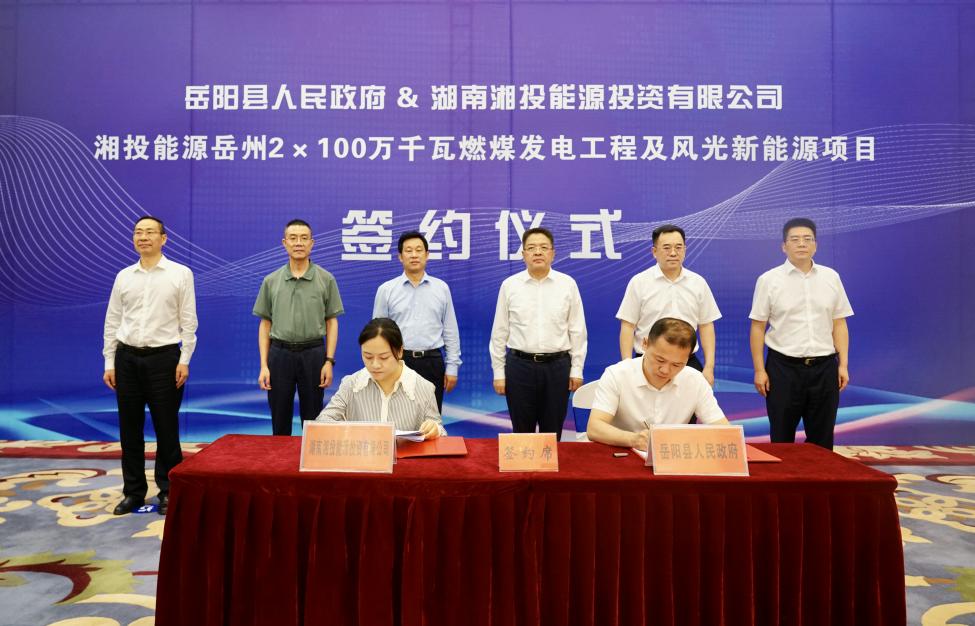 5月17日,湖南能源集团所属湘投能源投资有限公司(以下简称“湘投能源”)与岳阳县人民政府签订《湘投能源岳州2×100万千瓦燃煤发电工程及风光新能源开发协议》。岳阳市委副书记、市长李挚,集团党委书记、董事长李勇,湖南省能源局副局长袁劲松,岳阳市委秘书长、党组成员孙志诚,集团党委委员、湘投能源董事长韩智广,岳阳县委书记肖湘晖出席并见证签约。岳阳县委副书记、县长吴光文主持签约仪式。