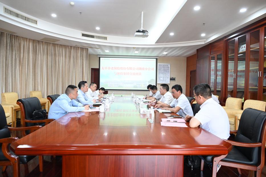 7月13日,太平养老保险股份有限公司湖南分公司(以下简称“太平养老保险湖南分公司”)党委书记、总经理赵俊峰率队到访湘投,集团党委书记、董事长李勇接待来宾并主持座谈,双方就企业年金管理、投融资合作等事项开展交流。太平养老保险湖南分公司副总经理刘忠,集团党委委员、总会计师石小明出席会议。赵俊峰介绍了太平保险的发展历程、业务板块等情况。他说,太平养老保险公司是我国首批设立的专业养老保险公司之一,专业经营养老金和员工福利保障业务,在企业年金运营、养老保险政策制定等方面树立了行业领先优势。湘投集团是具有重要行业地位和影响力的省属国有骨干企业,实力雄厚,发展迅速,双方合作前景广阔,希望未来深化交流互动、加强对接沟通,抢抓合作机遇,实现共赢发展。李勇对赵俊峰一行到访表示欢迎,介绍了湘投“一核两辅”主业发展情况。他表示,太平保险是中央金融企业,品牌历史悠久,业务经营体系完备,在服务国家战略、改善保障民生、助力实体经济发展中展现了担当作为。湘投集团定位为湖南能源投资建设运营省级主平台,承担着全省能源安全保供任务。希望双方立足现有合作基础,深化沟通交流,充分发挥各自优势,在年金受托管理、债券认购、金融投资等领域深化务实合作,共同为湖南经济社会高质量发展作出更大贡献。太平养老保险湖南分公司综合开拓部、养老金业务部,集团财务部、人力资源部,湘投基金相关负责同志参加座谈。