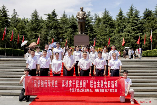 7月15日至16日,省国资委政策法规处党支部、湘投集团第六党支部组织全体党员和入党积极分子赴韶山联合开展“深学细悟学党史,真抓实干促发展”主题党日活动,组织参观滴水洞现场,聆听微党课,开展专题教学,从党的历史经验中感悟智慧、精神、力量。省国资委二级巡视员戴雪峰、湘投集团副总经理、党委委员刘晓等同志参加本次活动。
