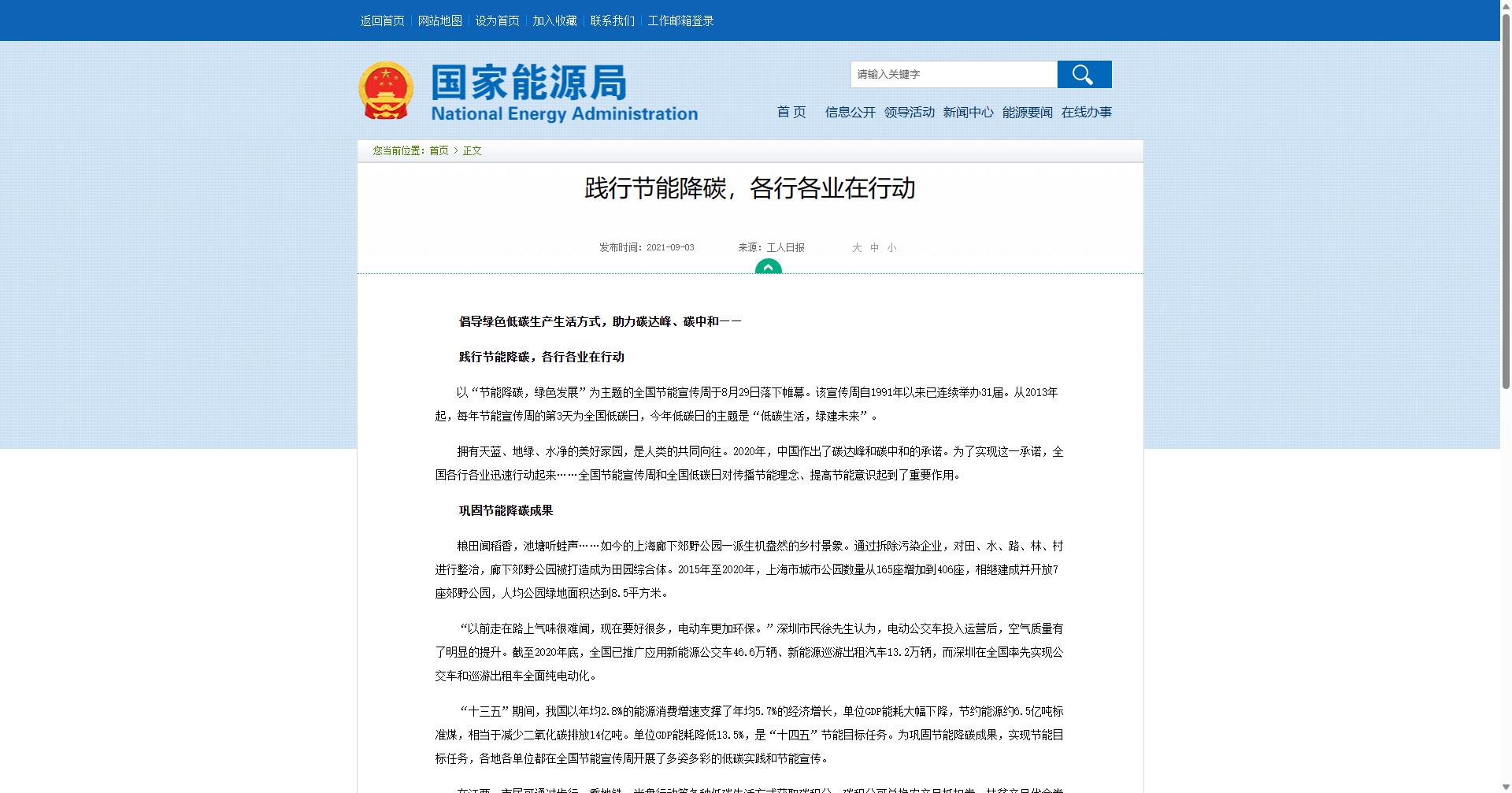 拥有天蓝、地绿、水净的美好家园,是人类的共同向往。2020年,中国作出了碳达峰和碳中和的承诺。为了实现这一承诺,全国各行各业迅速行动起来……全国节能宣传周和全国低碳日对传播节能理念、提高节能意识起到了重要作用。