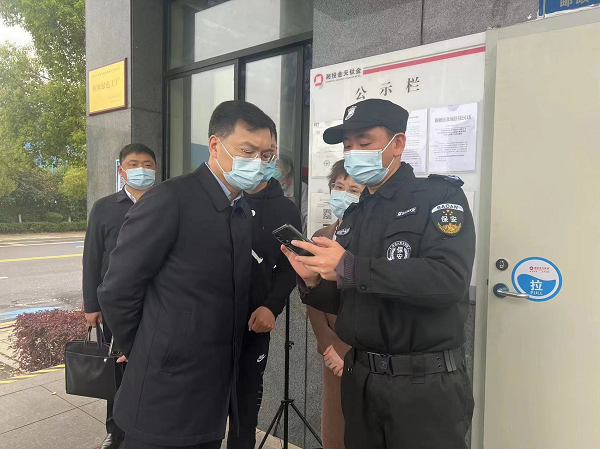 集团党委副书记、副董事长、总经理杨宏伟带队在金天钛金抽查门岗落实“双码”核验制度情况