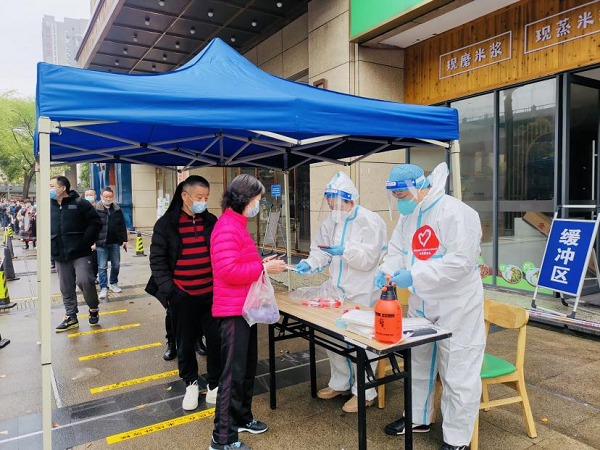 湘投青年志愿者协助社区工作人员进行核酸采集