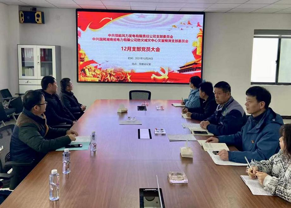 近日,国网湖南电力公司防灾减灾中心联合湘投国际金洞风电,现场开展了为期一周的覆冰预测工作,双方协同提升了能源安全稳定保障能力。2021年12月29日,金洞风电党支部与国网湖南省电力有限公司防灾减灾中心灾害预测党支部的党员们共聚一堂,以党建共建的形式开展了一次主题党日活动。