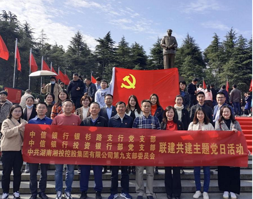 为持续巩固深化党史学习教育成果,促进党建业务双向融合,激发干事创业的热情,增强支部党员历史使命感和责任感,12月4日,湘投集团第九党支部与中信银行银杉路支行党支部、中信银行投资银行部党支部赴韶山联合开展“传承红色精神 凝聚发展力量”主题党日活动。中信银行长沙分行副行长隋浩,湘投集团党委委员、职工董事、总会计师石小明,总经济师彭亚文等领导参加活动。