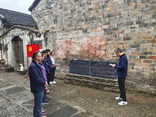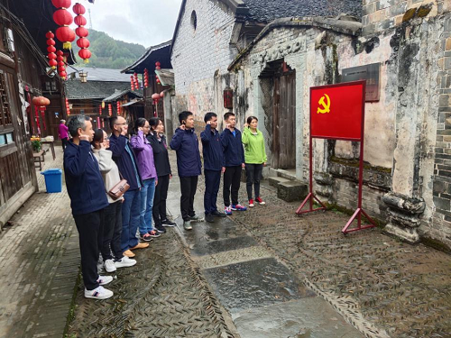 在邓小平征战绥宁指挥所前,全体党员高举右手,重温入党誓词,用铮铮誓词表达对党和国家的无限忠诚和热爱。参观指挥所旧址,大家深切缅怀革命先辈,感悟先烈为革命事业坚守信仰、不怕牺牲、前赴后继、舍生取义的伟大精神。