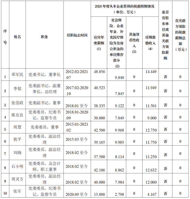 1.上表披露信息为我公司企业负责人2020年度全部应发税前薪酬(不含2020年发放的以往年度薪酬)。
