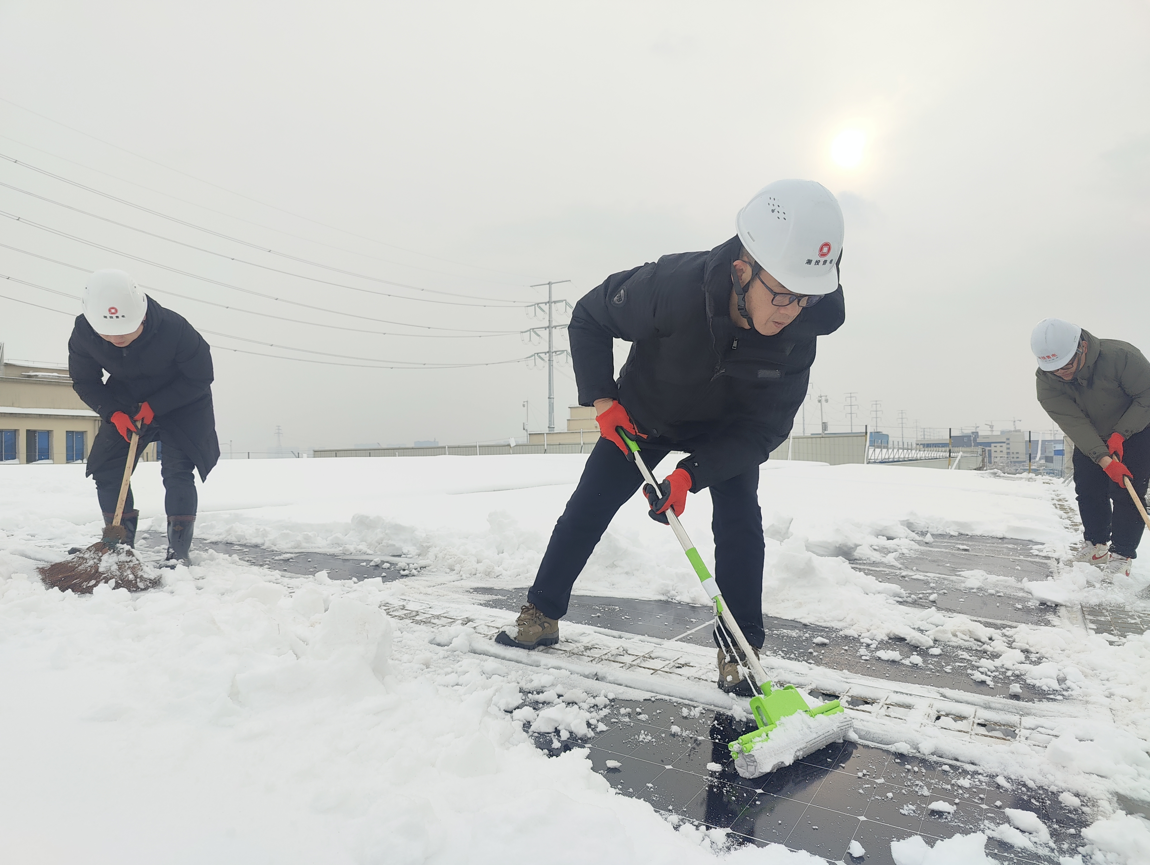 湘投能源售电公司积极组织对各分布式光伏电站开展组件清雪及设备检测,防止热斑效应,增加组件寿命,提升发电效益